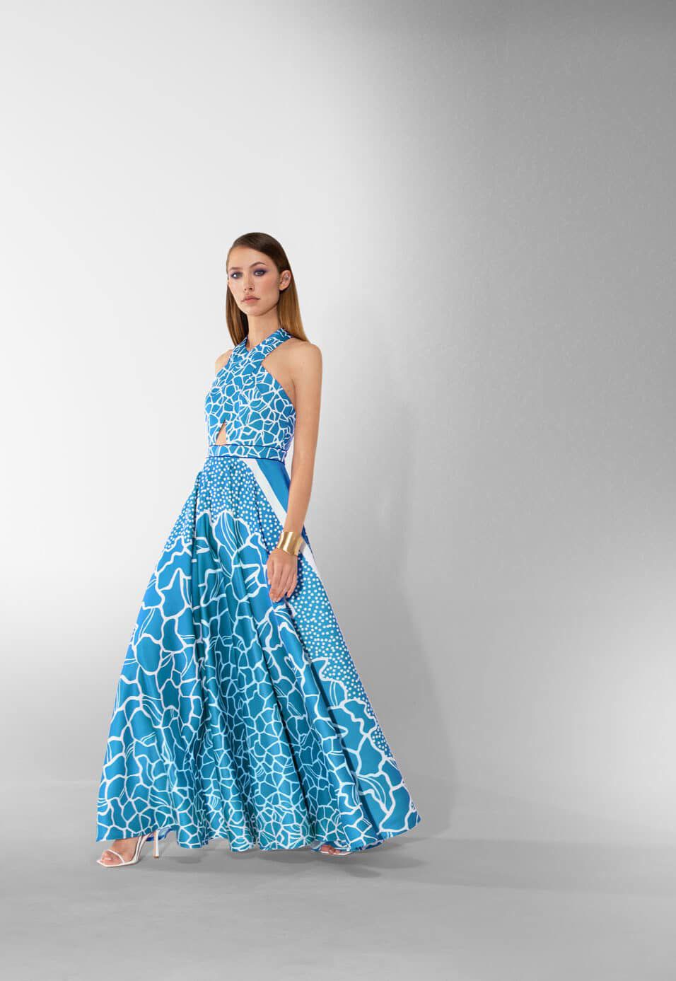 È un vestito dal fascino moderno ma con un’eleganza intramontabile, ideale per cerimonie, gala o serate estive di classe.