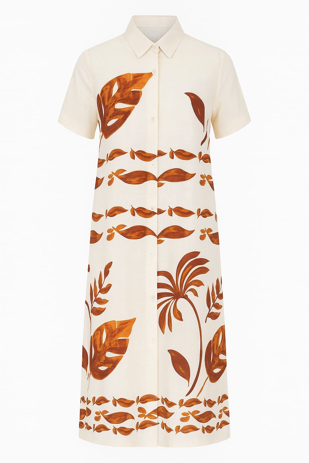 Abito lungo realizzato in un raffinato mix di lino e cotone, leggero e traspirante, ideale per la stagione estiva. Il tessuto naturale garantisce comfort e freschezza, mentre la linea scivolata dona eleganza e libertà di movimento. Il design è arricchito da stampe botaniche che regalano un tocco originale e contemporaneo, mantenendo uno stile sobrio e sofisticato. Versatile e chic, può essere indossato sia per il giorno che per la sera, abbinato a sandali bassi o accessori più ricercati. Facile da mantenere, è un capo pratico e durevole che unisce estetica e funzionalità.