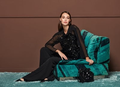 Raffinata e luminosa, questa blusa nera unisce eleganza e modernità in un capo di grande impatto. Il corpo è interamente ricoperto da paillettes tono su tono, che donano una brillantezza discreta e sofisticata, ideale per look da sera o occasioni speciali. Le maniche lunghe in tessuto trasparente aggiungono un tocco di leggerezza e femminilità, creando un delicato contrasto con la parte frontale decorata. Il taglio morbido assicura comfort e libertà di movimento, mantenendo un’eleganza impeccabile.