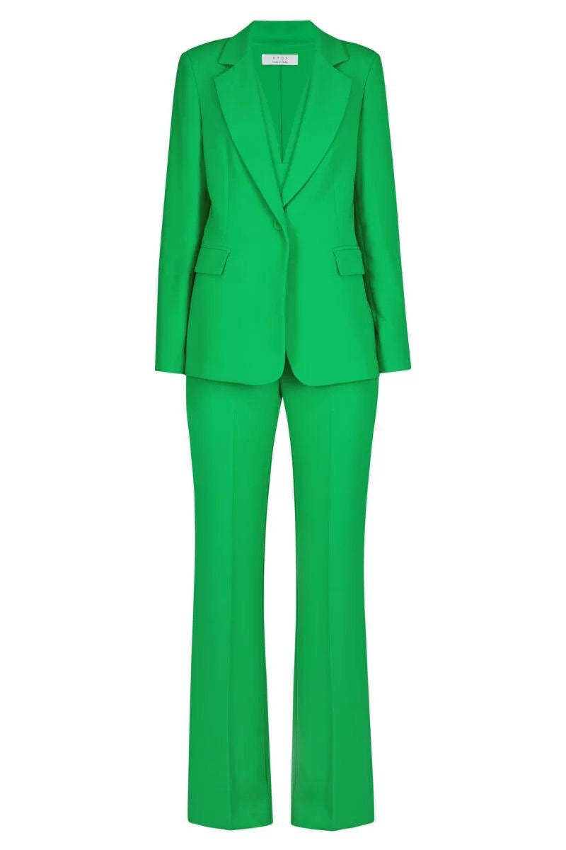 completo elegante e moderno in un verde acceso e brillante. È composto da tre pezzi: