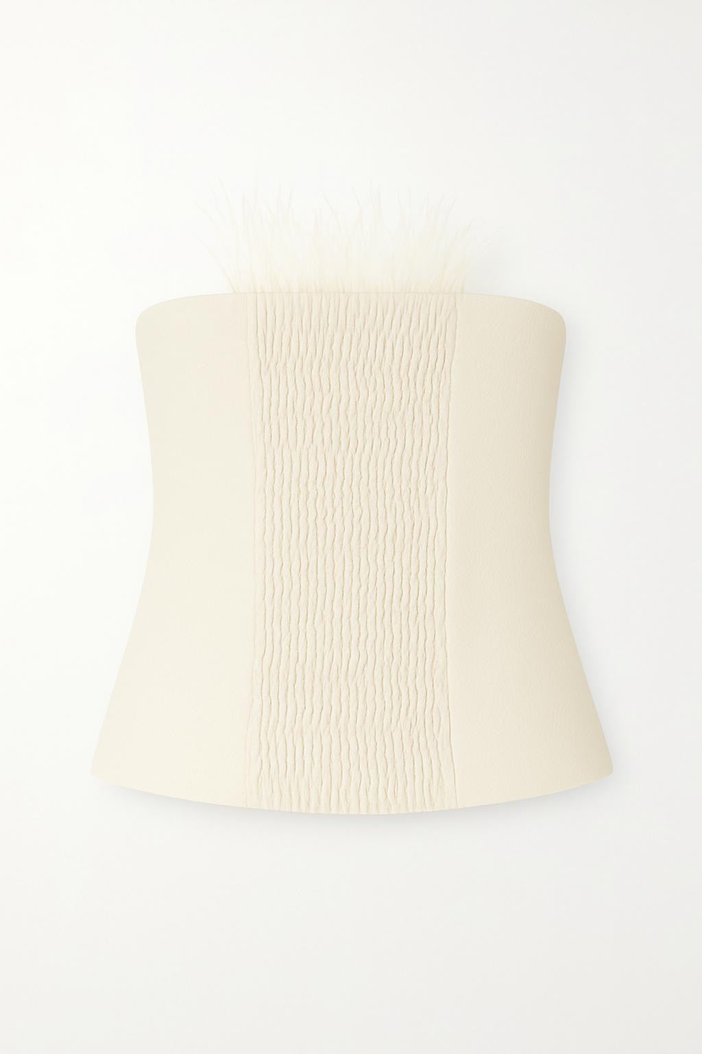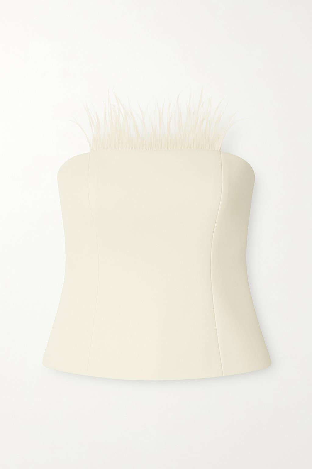 • Top bustier con piume frontali e arricciatura elastica posteriore