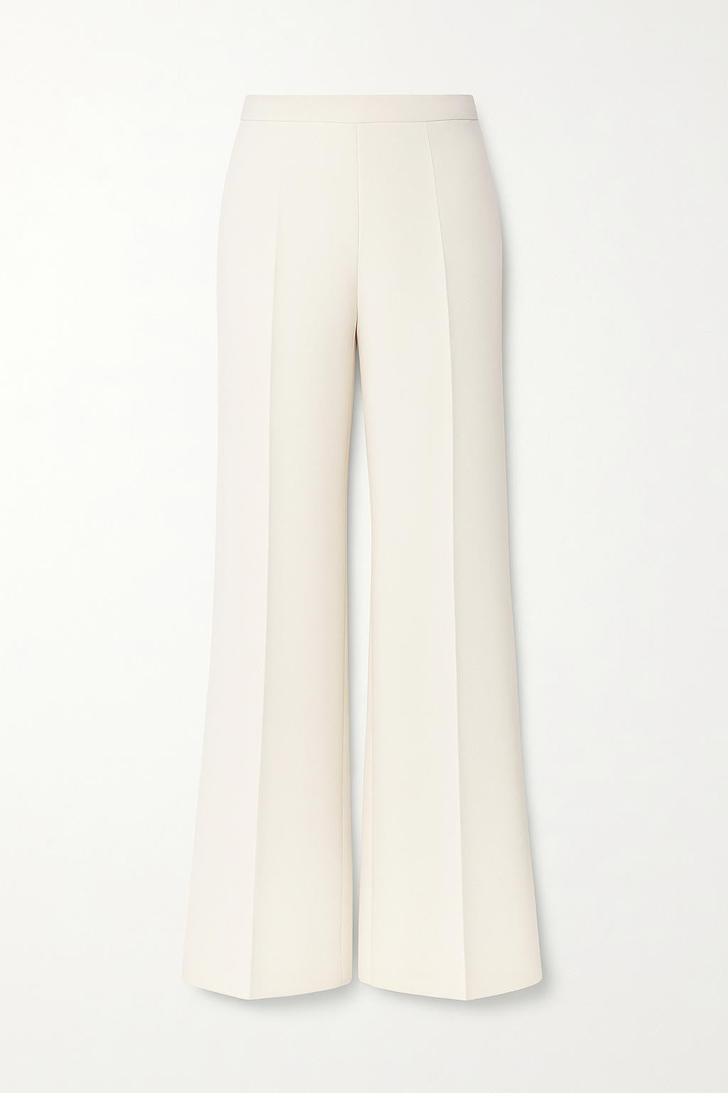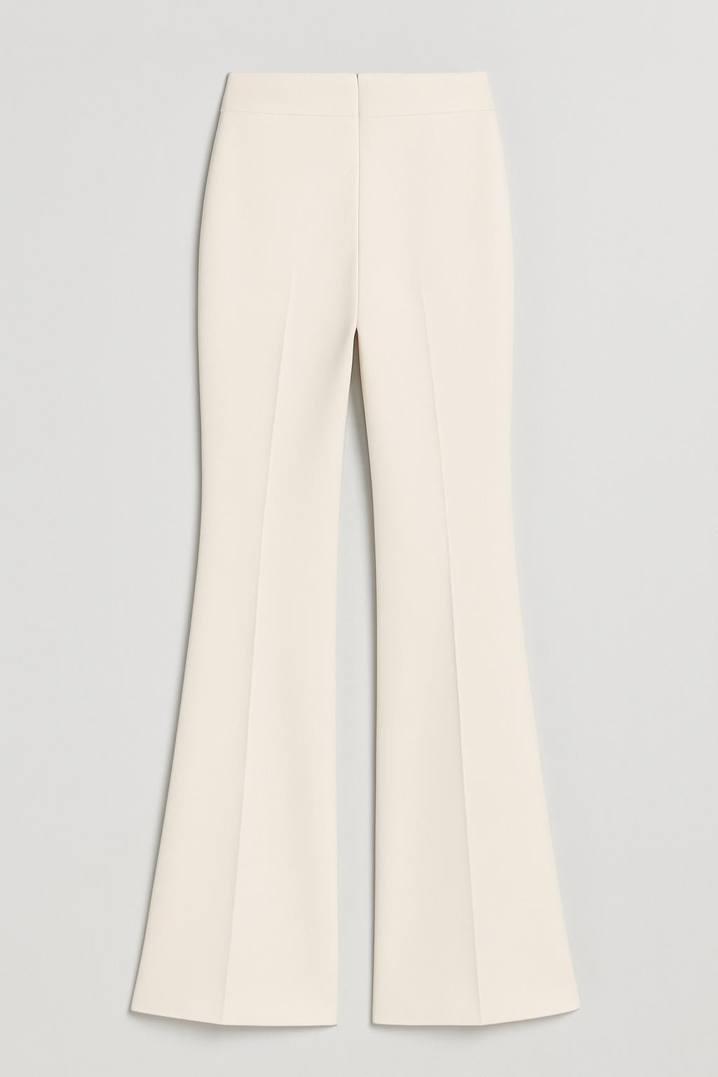 • Pantalone a zampa con vita liscia e cerniera laterale invisibile