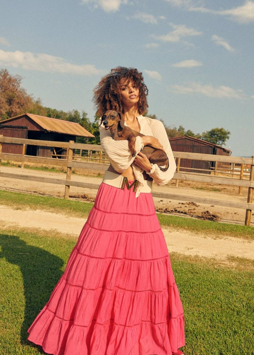 Gonna fucsia, lunga, non trasparente, 100% Viscosa