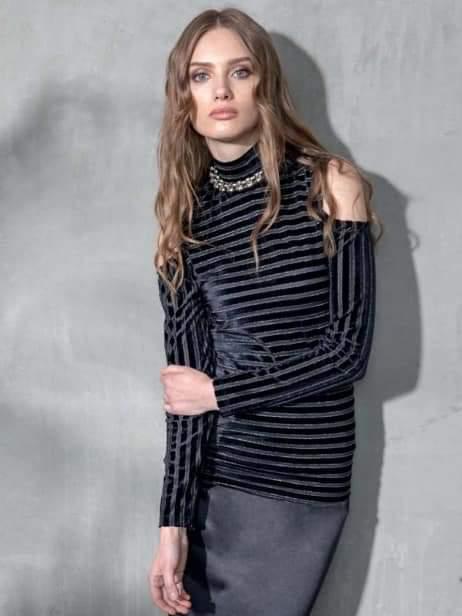 Maglia nera a righe collo alto in lurex