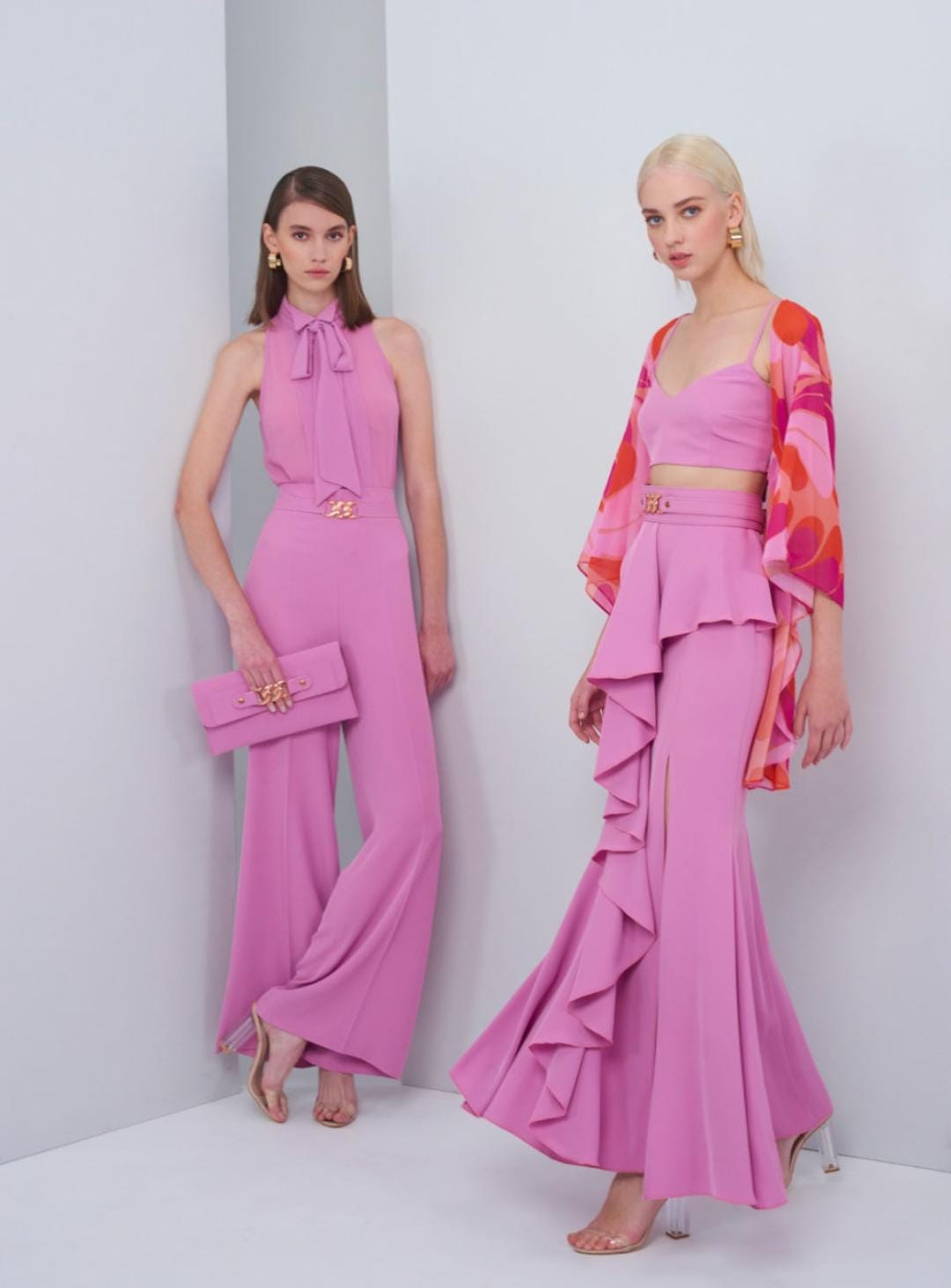 Pantalone della linea Edas Luxury a vita alta con fibbietta in metallo sul punto vita davanti,