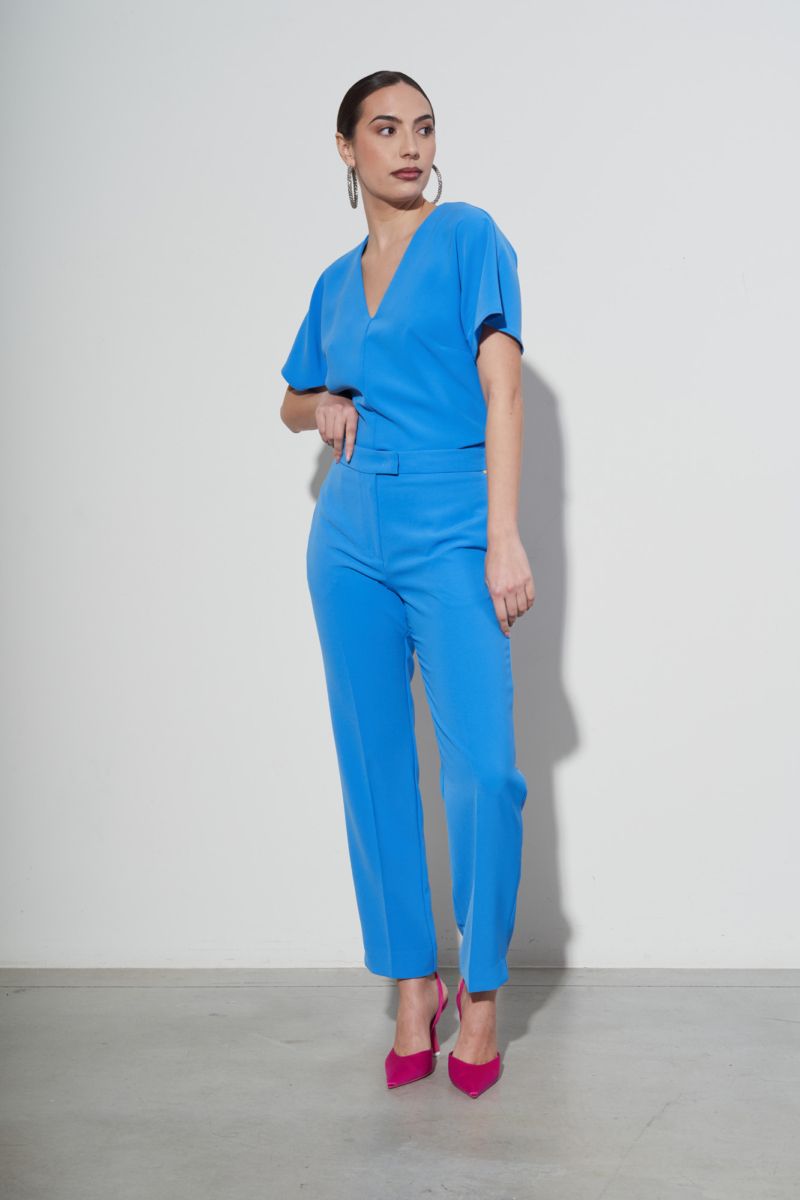 Pantalone celeste, della collezione di icona. Con elastico sul dietro e tasche sul davanti. Materiale: 96% Poliestere 4% Elastene