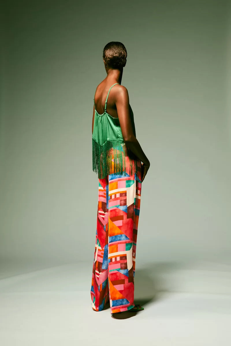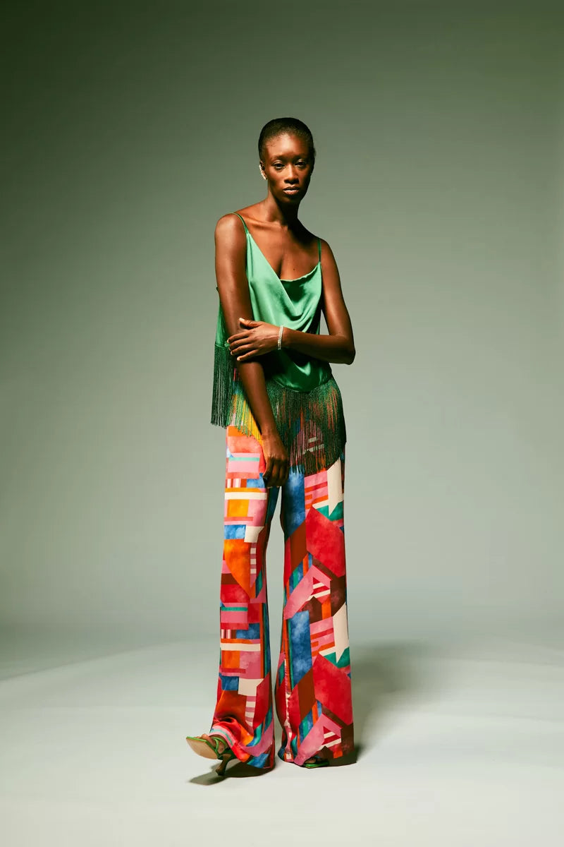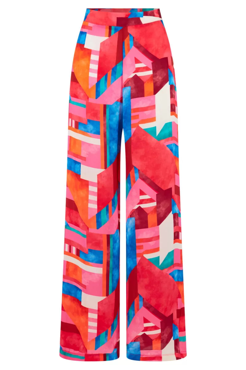 Pantalone Kaos, taglio dritto. Fantasia geometrica vivace.