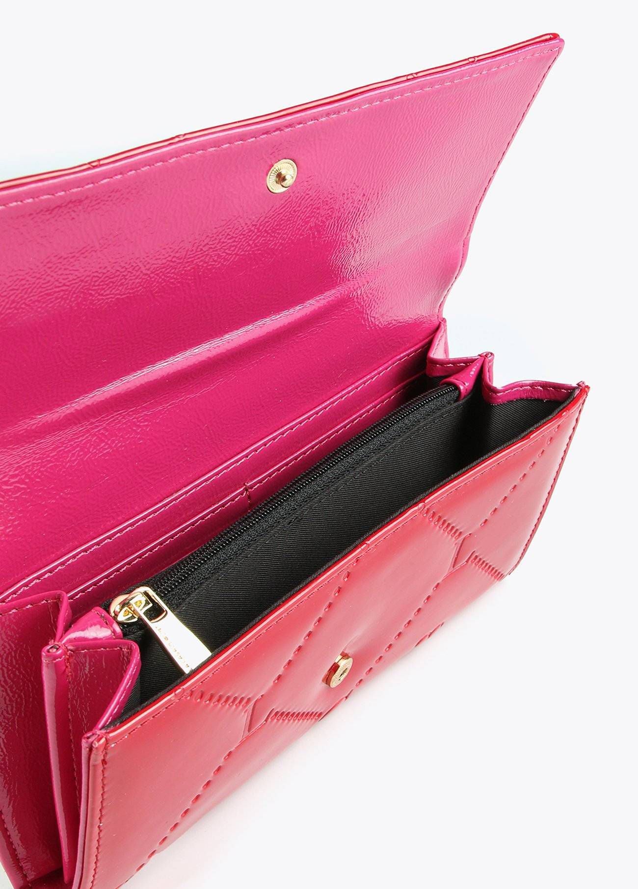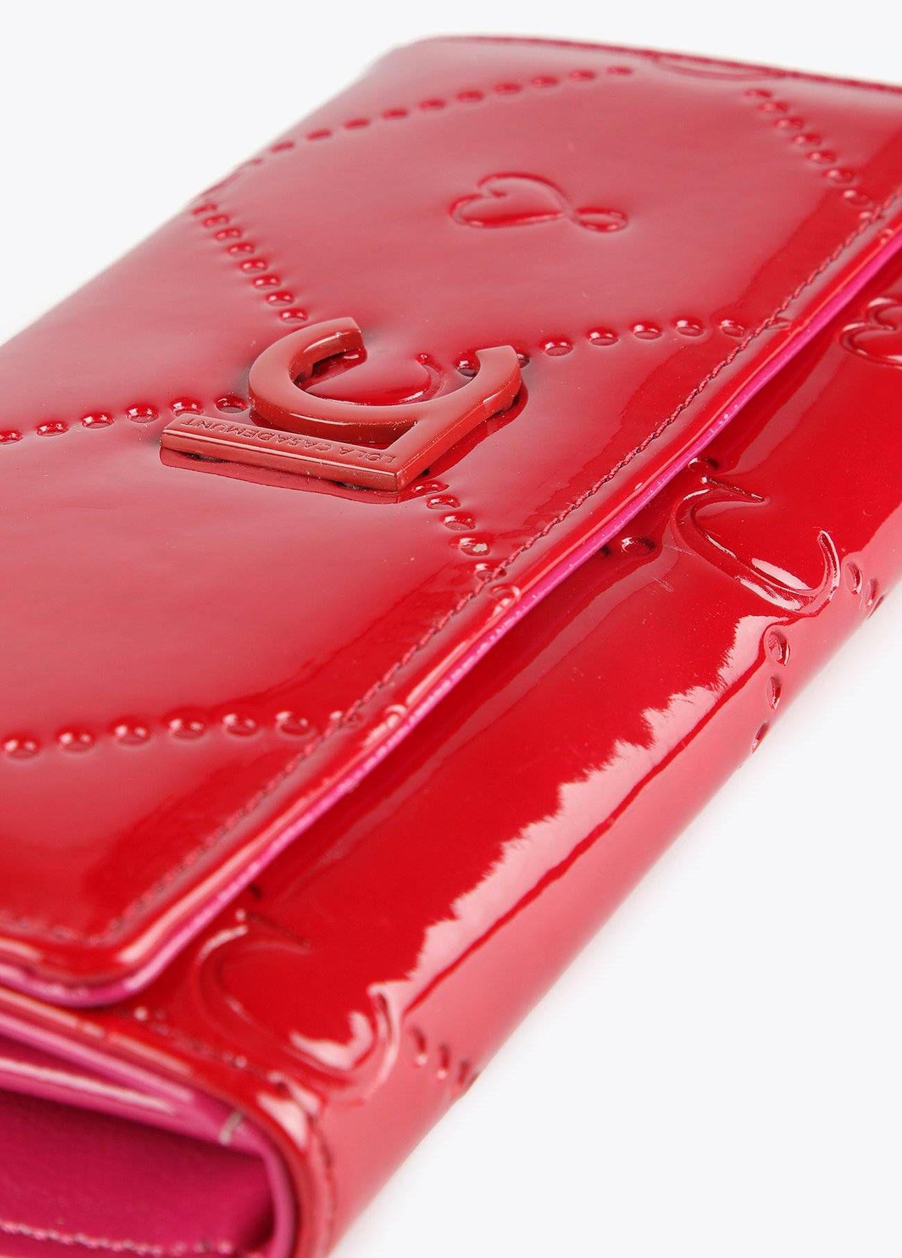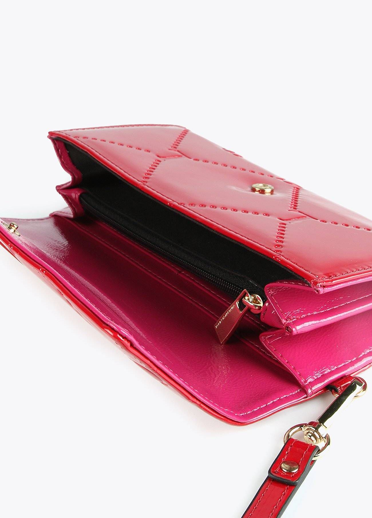 L’esterno, in pelle liscia color rosso intenso, trasmette carattere e stile, mentre l’interno, in vibrante pelle fucsia, aggiunge un tocco di originalità e femminilità.