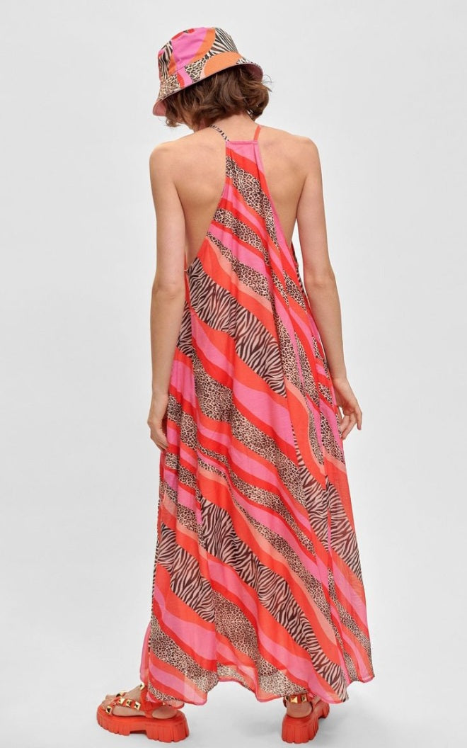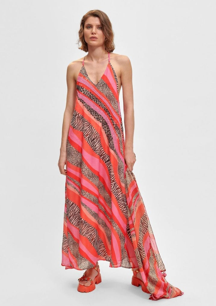 Vestito estivo, multicolore, con scollo a V e ricamo di perline e paillettes, 100% Viscosa.