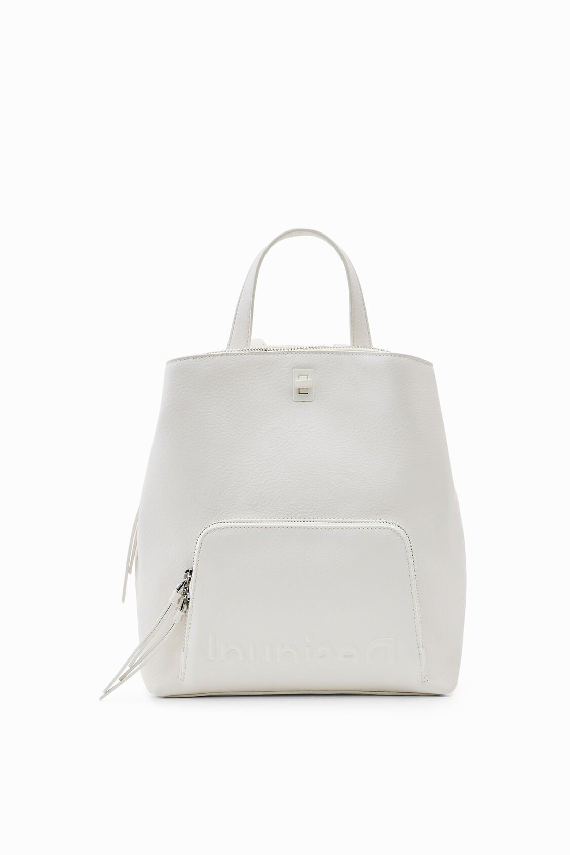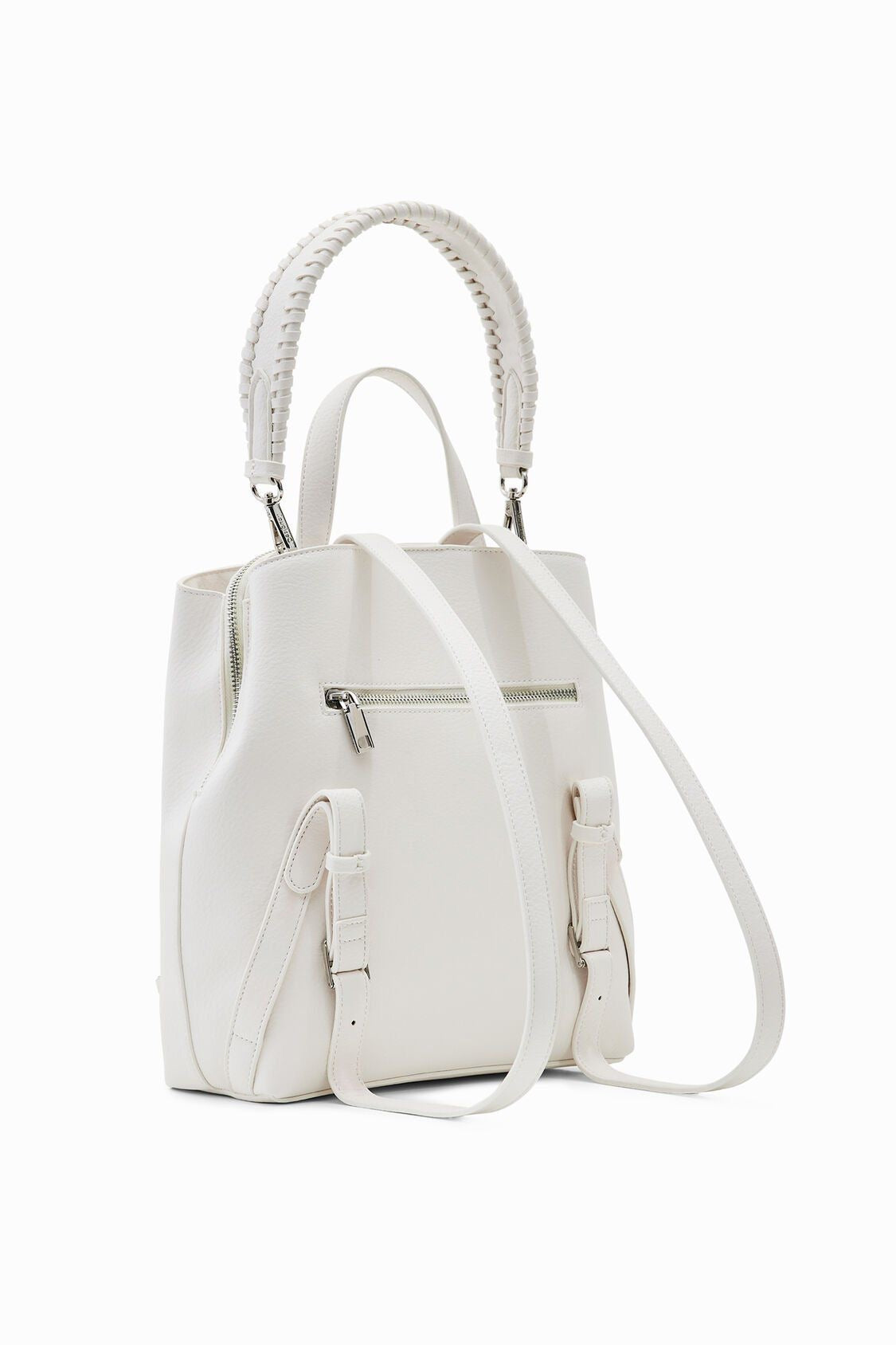 - Forma: è uno zaino compatto con linee pulite e struttura semi-rigida. Ha un piccolo manico superiore che permette di portarlo anche a mano.